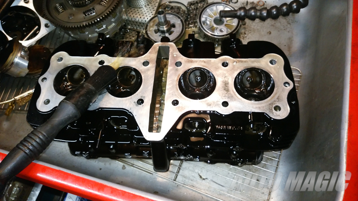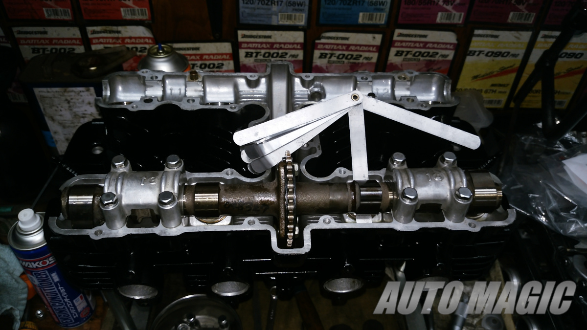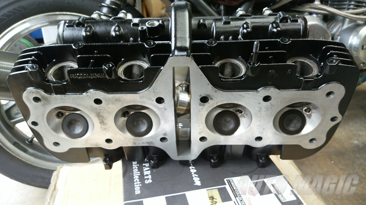 燃焼室のカーボン落とし 最小限の面研後のSET この時点ではおよそのシム調整
