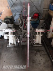 AutoMagicはヘッド~バックボーン~シートレールにいたる全てをチェック!ピポットシャフトとの垂直関係&中心関係も同時にチェック!!