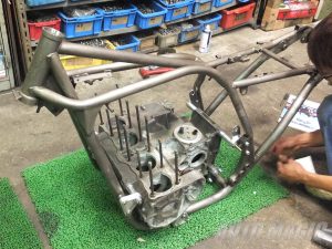 画像は、塗装から上がって来て足廻りの組み込みスタートのシーンです。