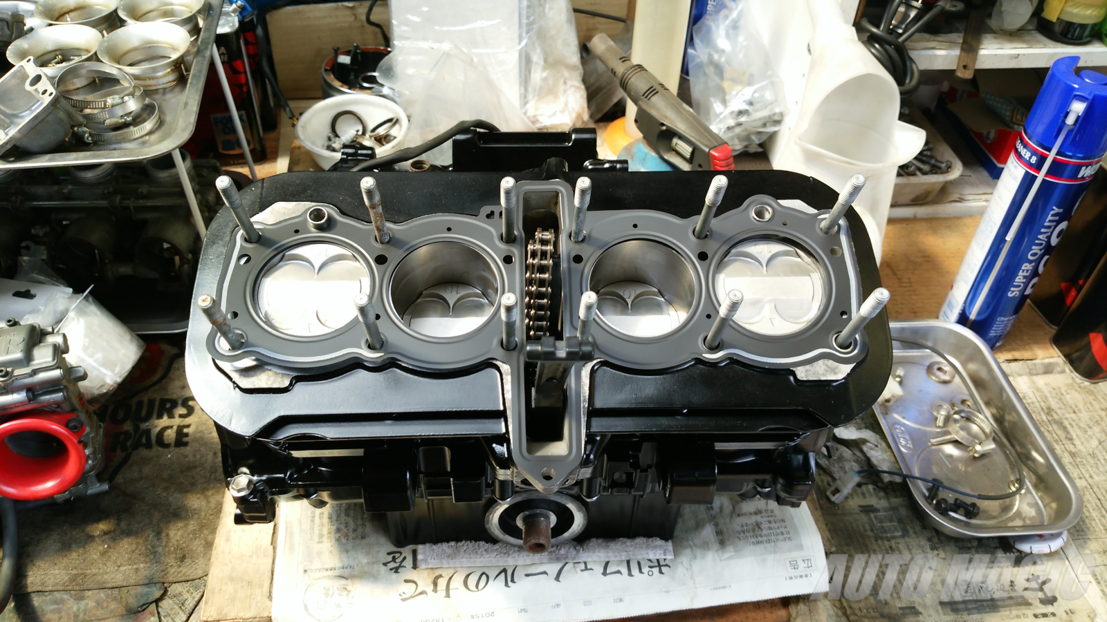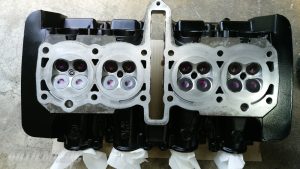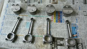 | エンジンのOVERHAULです。 ピストン、コンロッド、ほか・・WPC加工 OVERHAULは燃焼室やバルブ廻りが特に肝心ですね! 潔く新品部品への交換やガイド交換はしておくべし。 |