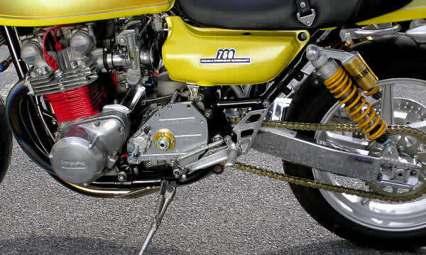 (F)17-(R)18インチの状態で400の足廻りが着いていました。とてもハンドリングがクイックでFブレーキをかけるとフルボトムしてしまうので、コーナーの侵入時ではこのお客様がとても器用な方で、なるべくノーズダイブをしない様にして乗っていたそうです、またリヤブレーキもローター径(φ210)が小さくいくら踏んでも200kgOVERの車体は止まりませんでした・・・・とのこと。そこで車輌姿勢も今ひとつしっくりいかなかった所を、抜本的に対策と、お客様の好みの乗り味や当ショップの実績とデータとを駆使し、用途はワインディングで乗り味は「ヒラヒラ感」が好きなお客様用に合わせSet Upしてみました。